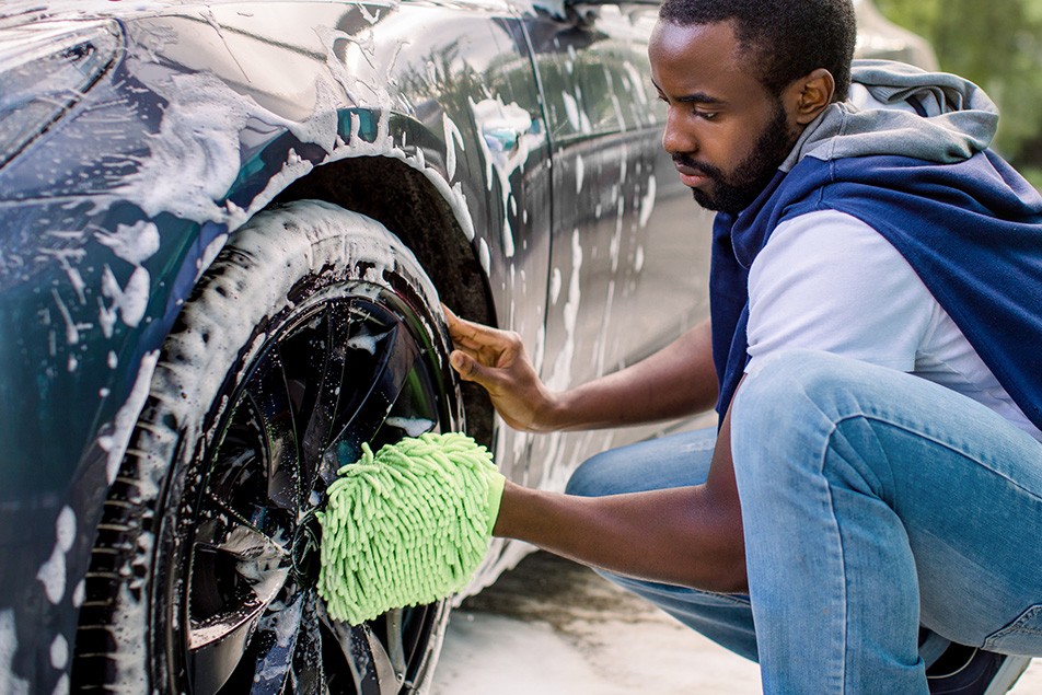 Consider cleaning your wheels about twice a month, or as often as you wash your car’s exterior. Start with a thorough rinse to remove loose dirt and brake dust. This will help prevent scratching when you start scrubbing. Use a specific cleaning spray for automobile wheels to loosen and remove bonded contaminants. And similar to the body of your car, use a protectant wheel wax to keep contaminants from bonding to the wheels.